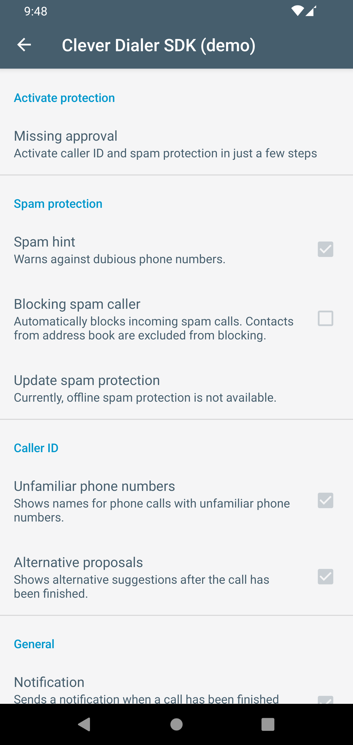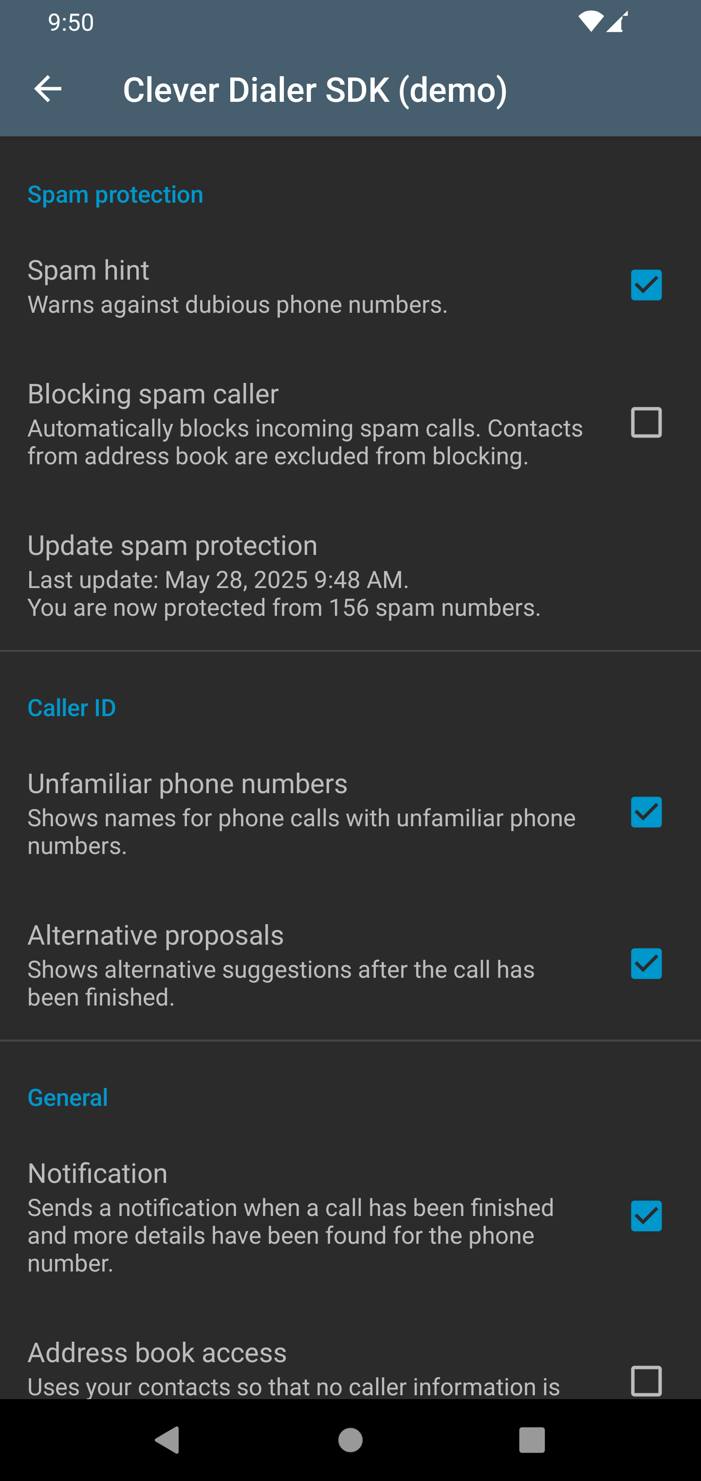 - Should the SDK automatically block calls from known spam numbers?